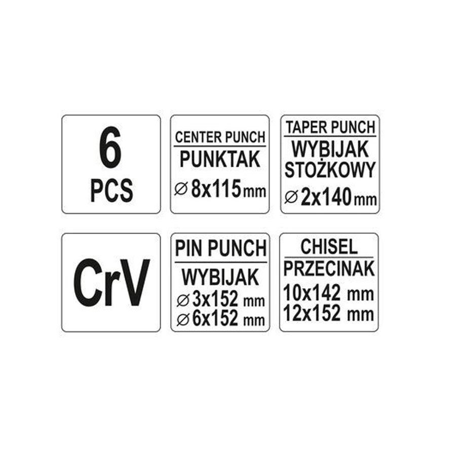Yato πόντες και κοπίδια χειρός, 6 τεμάχια, CrV