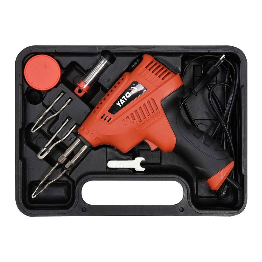 Ηλεκτρικό κολλητήρι της εταιρίας Yato με ισχύ 200W. Ιδανικό τόσο για μεγάλες ηλεκτρικές συνδέσεις αλλά και για χρήση σε μικρότερα ηλεκτρικά εξαρτήματα. Θερμαίνεται πιο γρήγορα από σε σχέση με τα τύπου ‘μολύβια’ αλλά λόγο του μεγέθους του δεν είναι κατάλληλο για μικροσκοπικού τύπου συνδέσεις.
